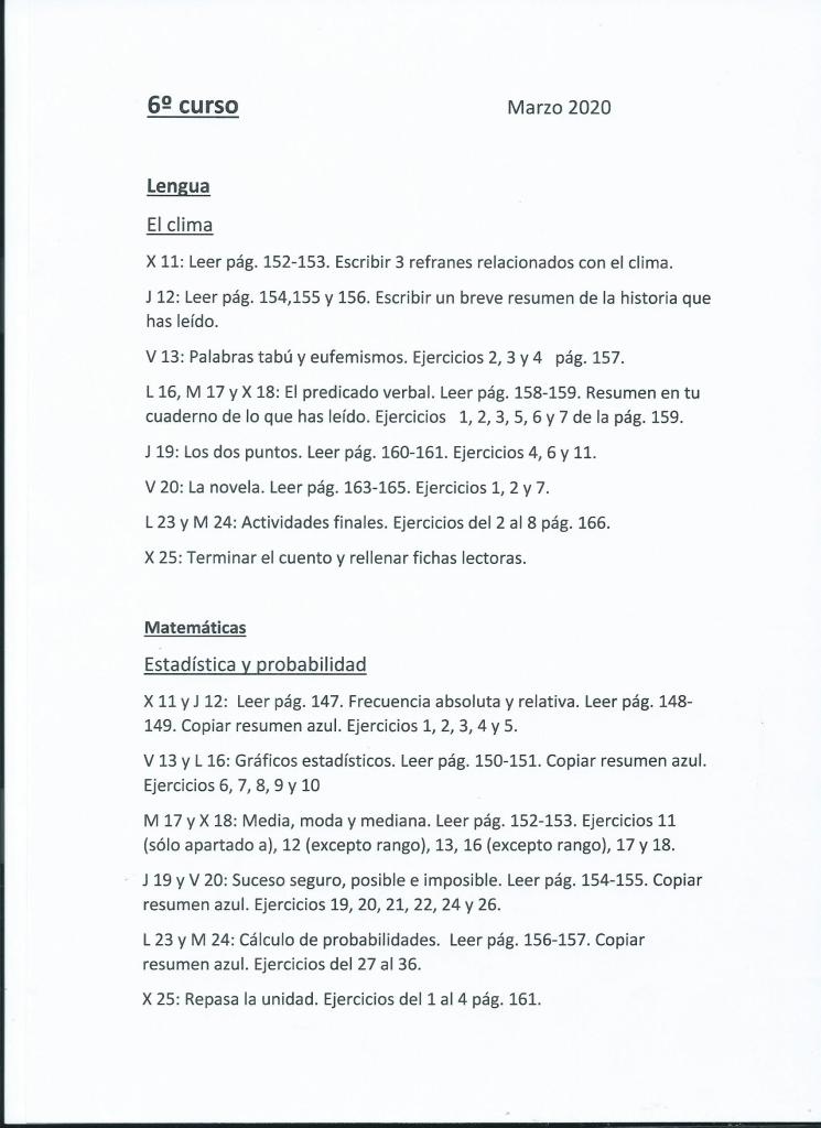 - Tareas de lengua y Matemáticas